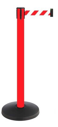 Gurtpfosten 1-fach rot - Höhe ca. 1000 mm - Pfosten ø 63 mm - Fuß ø 350 x ca. 30 mm - Material Pfosten Metall - Material Fuß Kunststoff, schwarz - Gurtlänge 3 m - Gurtbreite ca. 50 mm - Gewicht ca. 10,5 kg