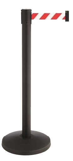 Gurtpfosten 1-fach schwarz - Höhe ca. 1000 mm - Pfosten ø 63 mm - Fuß ø 350 x ca. 30 mm - Material Pfosten Metall - Material Fuß Kunststoff, schwarz - Gurtlänge 3 m - Gurtbreite ca. 50 mm - Gewicht ca. 10,5 kg