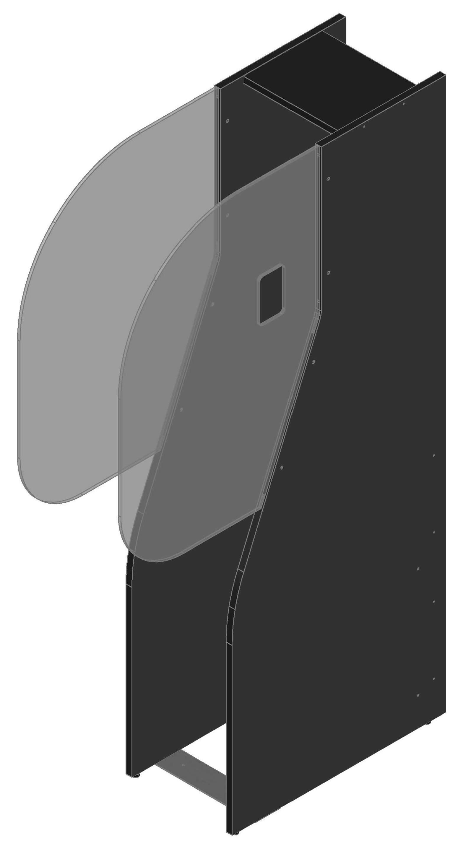 Höhe 1.220mm, Tiefe 861mm, Holzwerkstoffplatte schwarz, Acrylglas XT durchsichtig, Dicke 6-8mm mit Griffloch