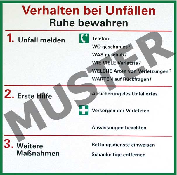 gemäß DGUV Vorschrift 1 schlagfester Kunststoff, wetterfest, langnachleuchtend Maße 410x590mm Art.nr. 55031314