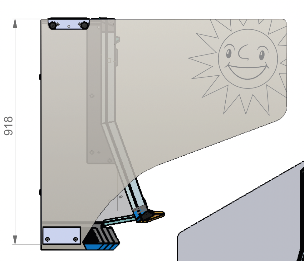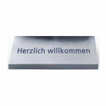 Geschlossener Fuß mit Rollen für das Spielhallen-Informationsboard. Ausgelaserter Schriftzug “Herzlich Willkommen” und “Auf Wiedersehen” Höhe Fuß: 196 mm Tiefe Fuß: 559 mm # 55041172