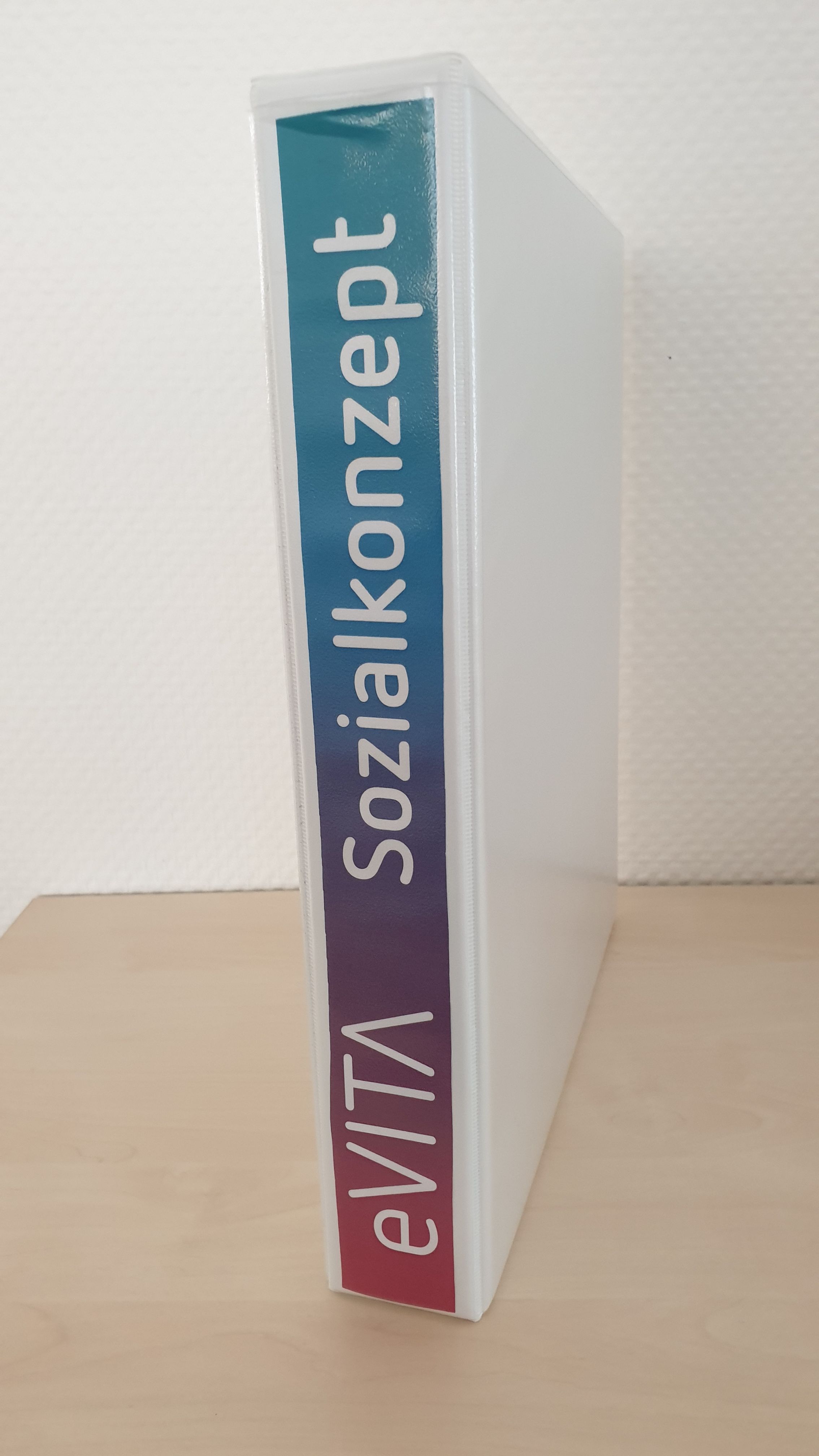 DIN A4-Ordner mit "eVITA Sozialkonzept"-Schriftzug. Kann zur Aufbewahrung des aushangpflichtigen Teils Ihres Sozialkonzepts oder zur Platzierung im Ablagefach des Infoboards für die Gastronomie verwendet werden. Art.Nr. 99931114