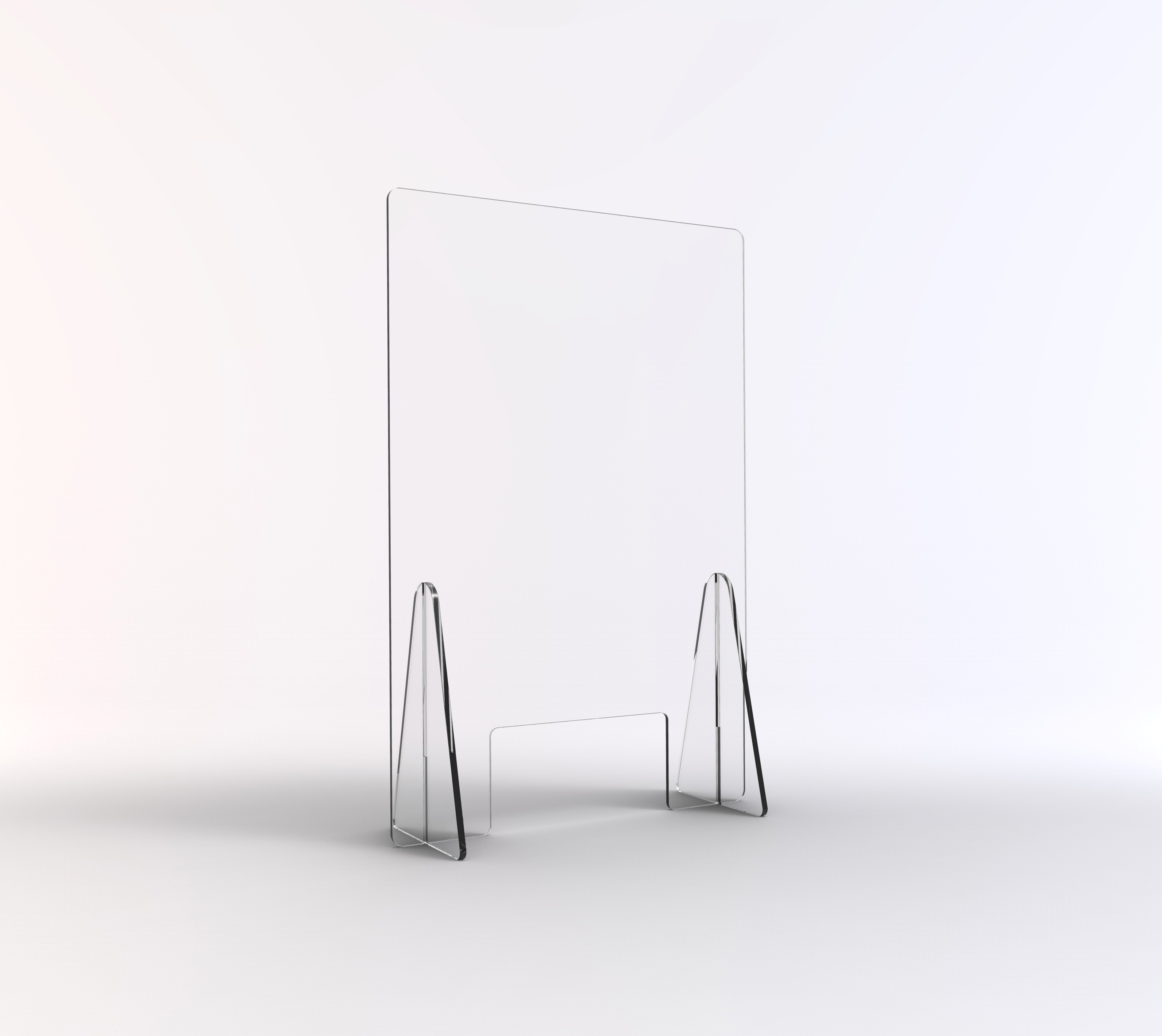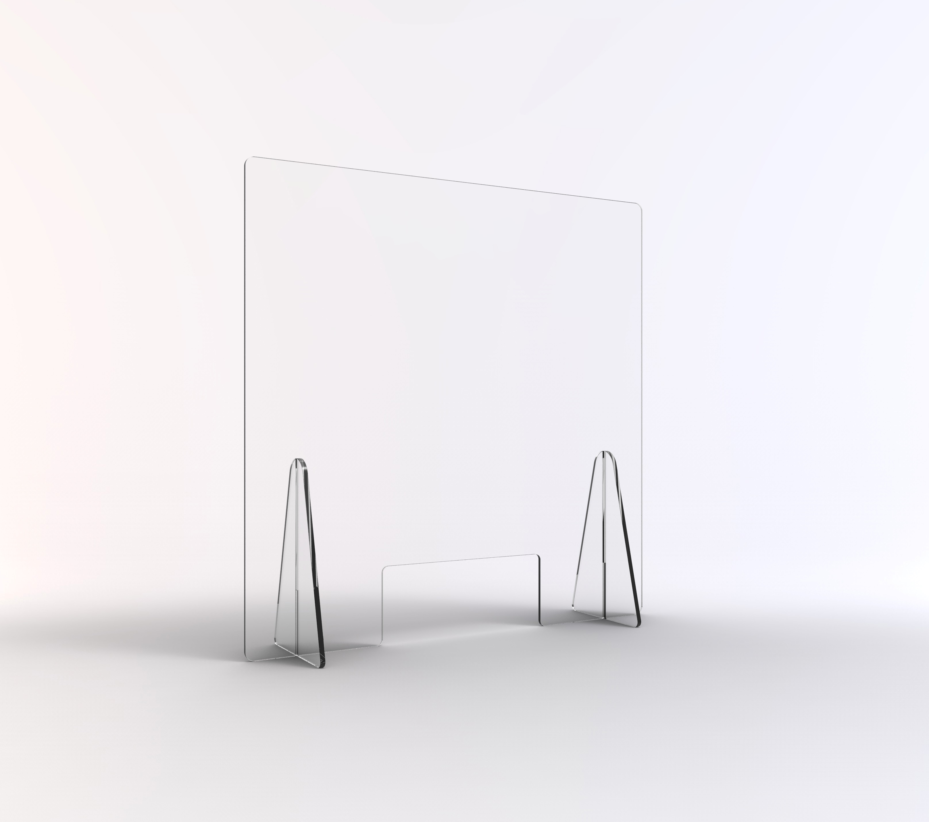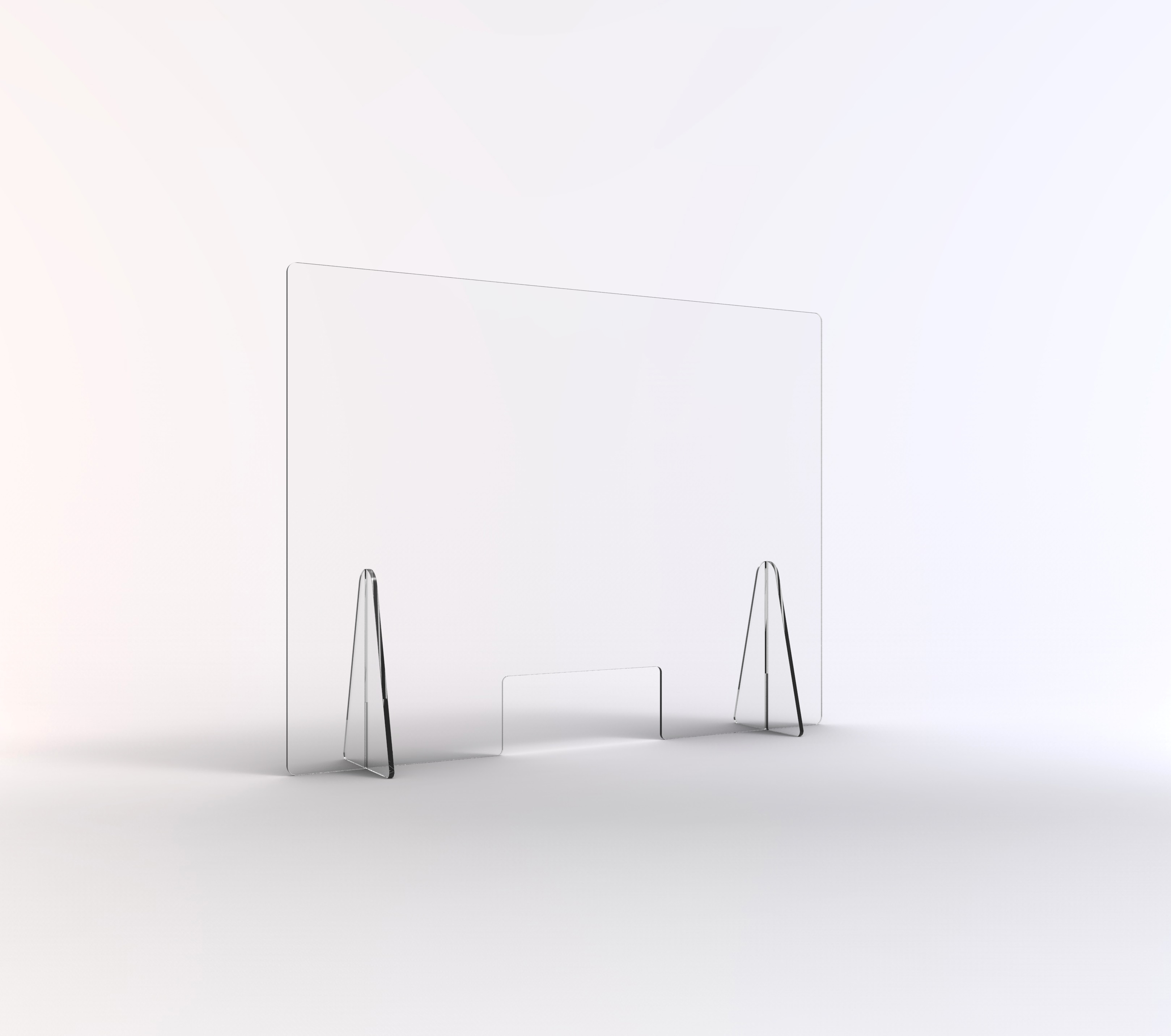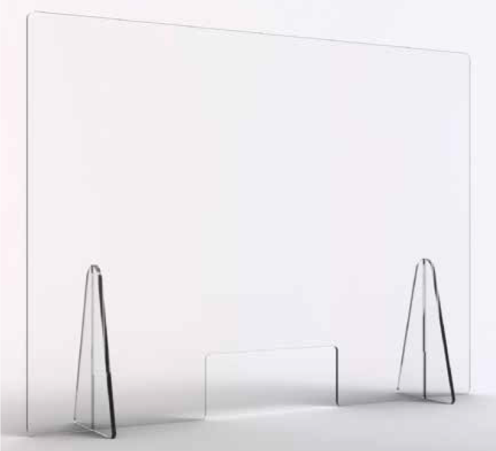 Schutzwände zum Aufstellen auf dem Tresen - Scheibe aus Acryl gefräst, 6-8 mm stark - Ecken gerundet, Kanten gebrochen - mit Durchreiche (30 x 20 cm) - Standfüße aus Alunox gekantet - Schutzwand kann frei hingestellt werden - alternativ kann die Schutzwand auch aufgeschraubt bzw. mit doppelseitigem Klebenand fixiert werden - besonders geeignet für Empfangsbereiche und Theken