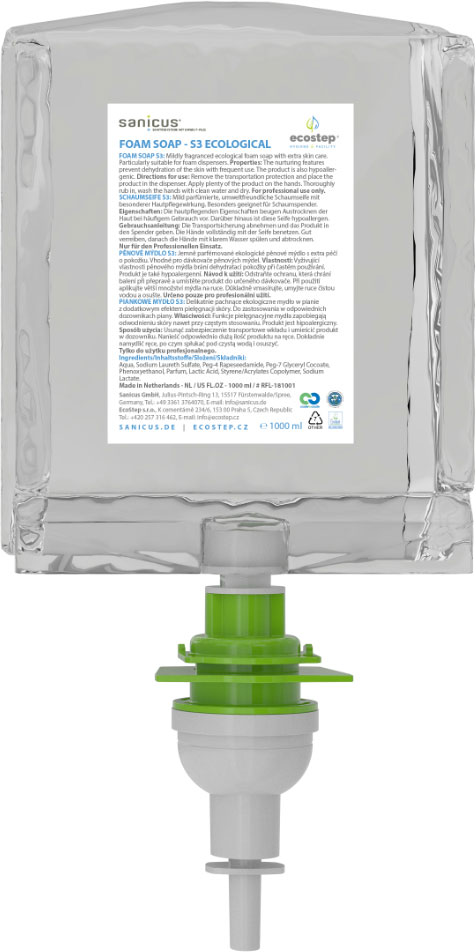Desinfektionsschaum S3 Hände - kein Wasser oder Handtuch erforderlich - das perfekte Werkzeug für den persönlichen Schutz - trocknet die Hände nicht aus und Hautreizungen werden vermieden - verhindert die Ausbreitung von Viren und anderen gefährlichen Krankheitserregern - alkoholfrei - das System bildet einen reichhaltigen Schaum