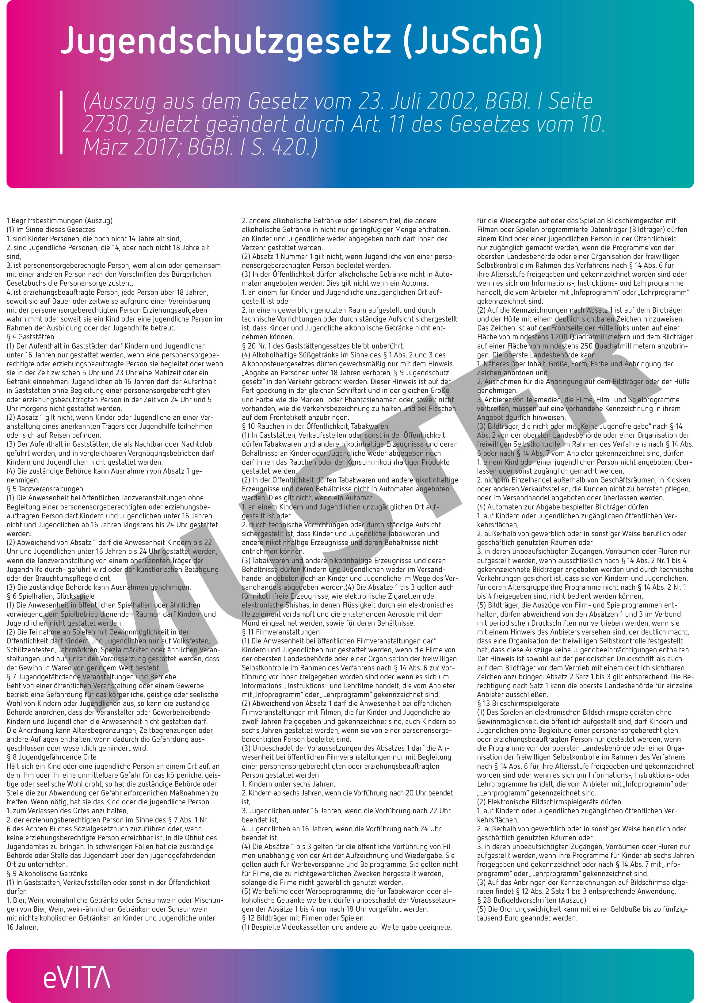 Plakate (Hausordnung, JuSchG, Spielrelevante Informationen, Beratungsstellen) im eVITA-Design. Vier Ablagefächer universal für DIN lang, DIN A5, DIN A4 inklusive vier Klemmrahmen DIN A3 Höhe Board: 1611,5 mm # 55041171 Breite Board: 800 mm Tiefe Board: 50 mm