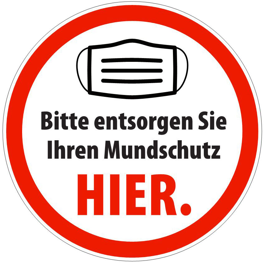 Aufkleber Abfallbehälter „Mundschutz“ - ø 20 cm