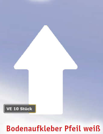 Bodenaufkleber Pfeil weiß - Materialstärke 1,6 mm - Material PU, gewebeverstärkt - (BxH) 96 x 140 mm - Einsatzbereich Innen / Außen