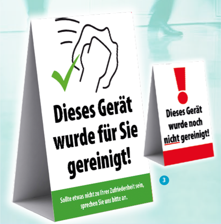 Tischaufsteller „Gerät gereinigt“ DIN A4 · beidseitig bedruckt