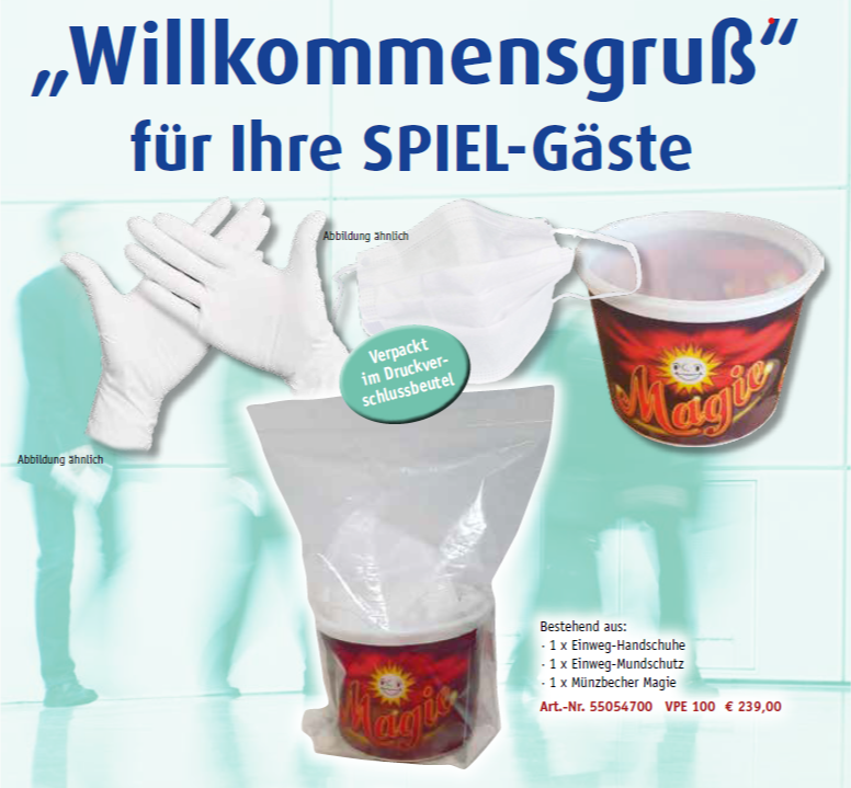 Bestehend aus: - 1 x Einweg-Handschuhe - 1 x Einweg-Mundschutz - 1 x Münzbecher Magie